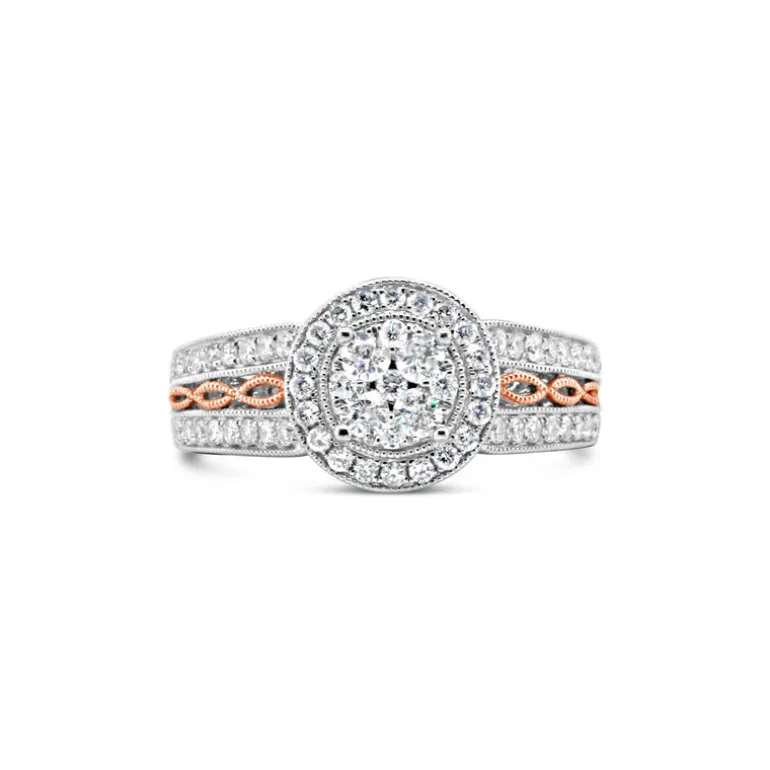 4ct White & Rose Gold Diamond Halo Cluster Ring TDW 0.75ct