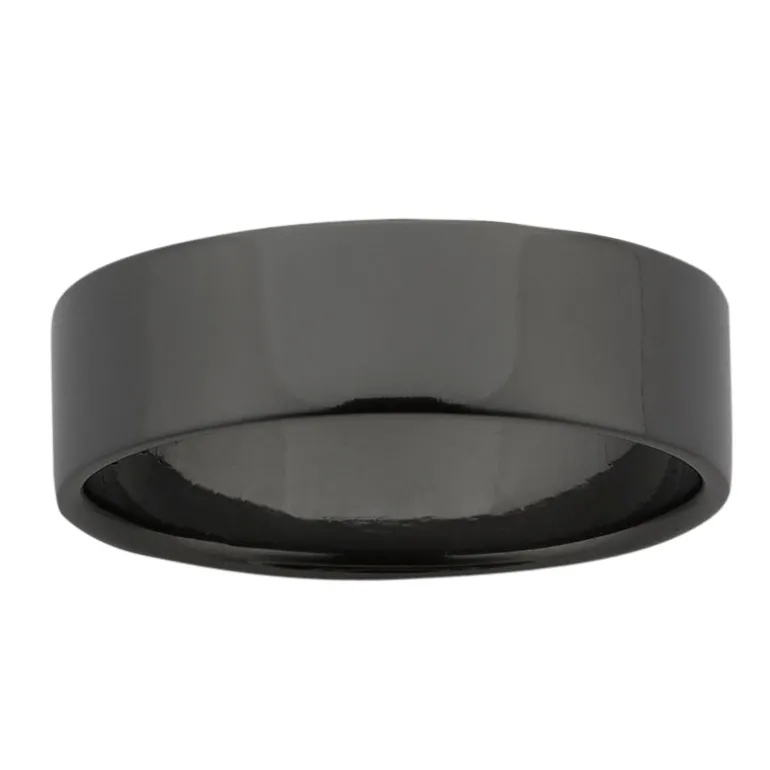 6mm wide flat Black Zirconium band with soft edges.