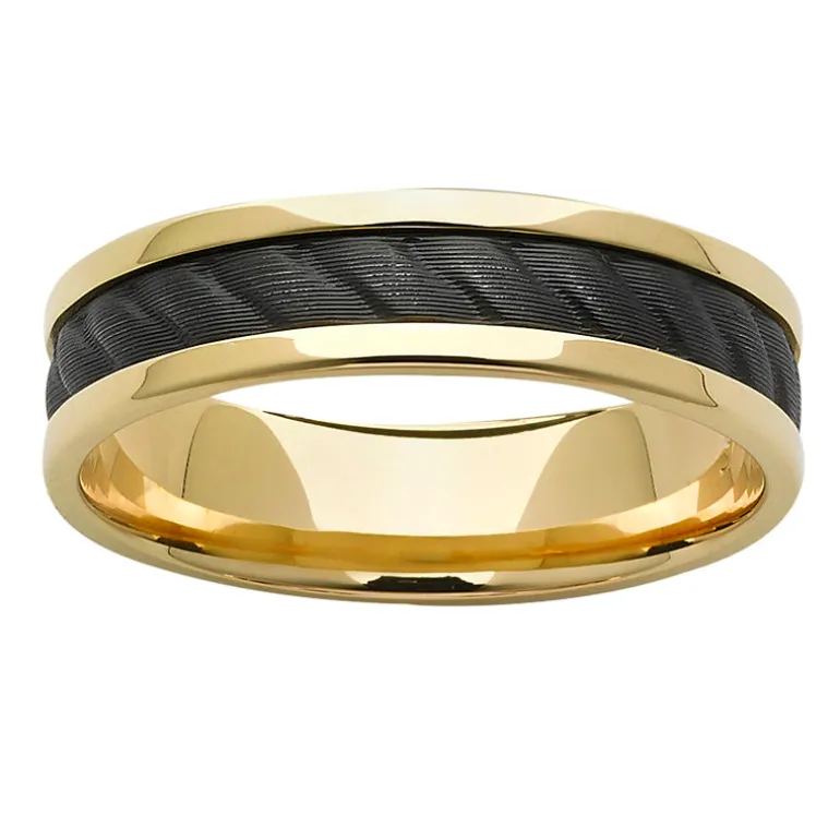 9ct Yellow Gold Band with rope effect black zirconium textured centre band