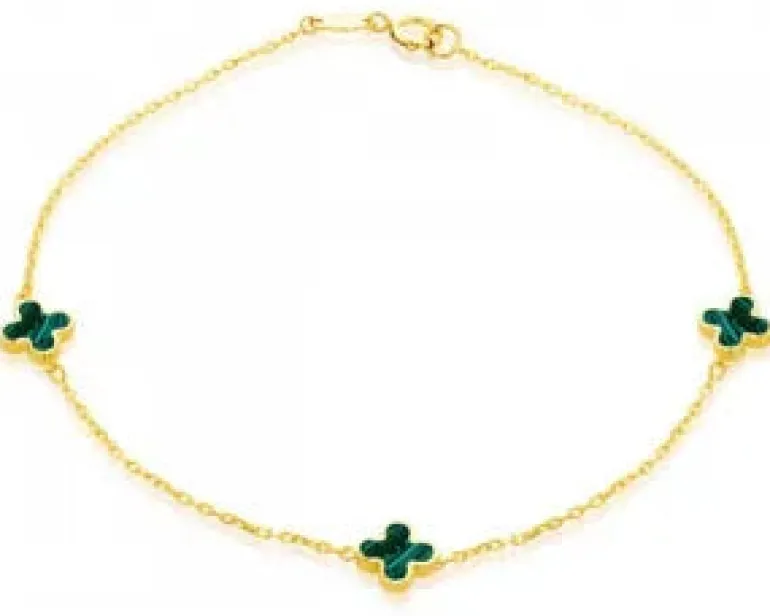 9k Yellow Gold 3 Malachite Petal Bracelet