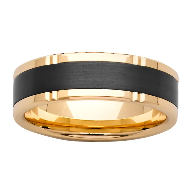 9k Yellow Gold & Black Zirconium Band | Size Y