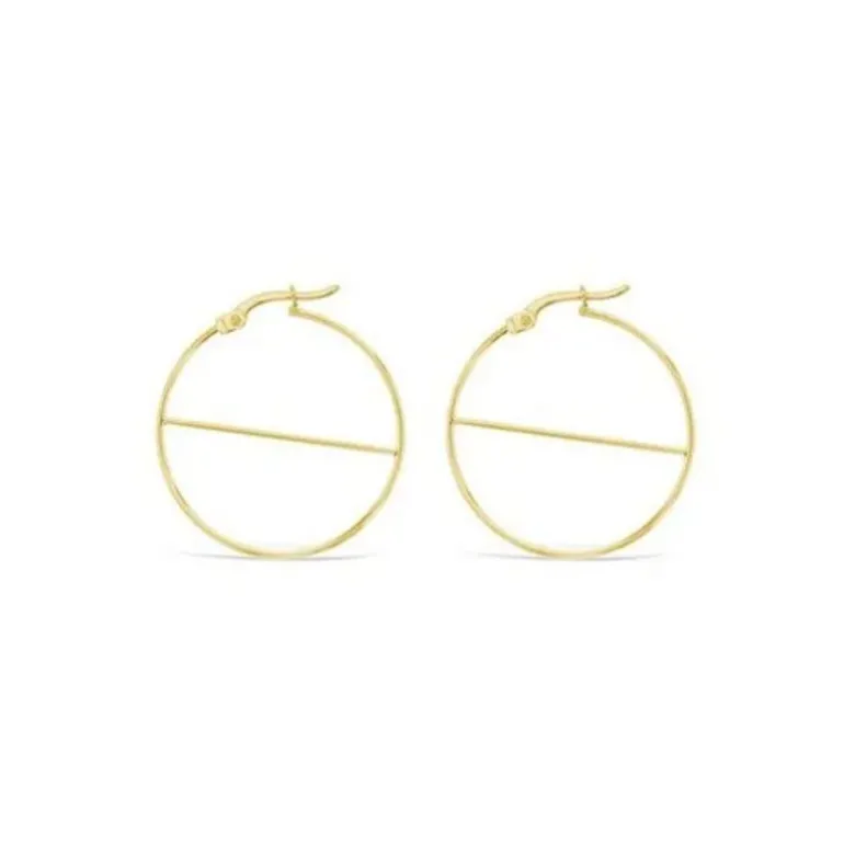 9K Yellow Gold Geometric Hoops with Diagonal Bar