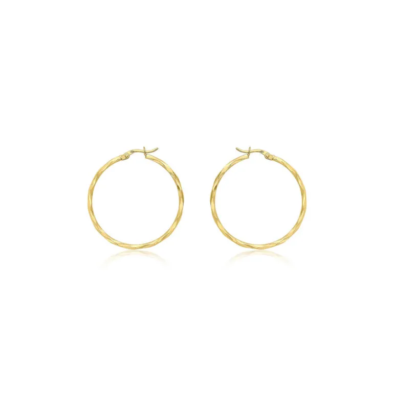9k Yellow Gold Hollow Diamond Cut Hoop Earrings
