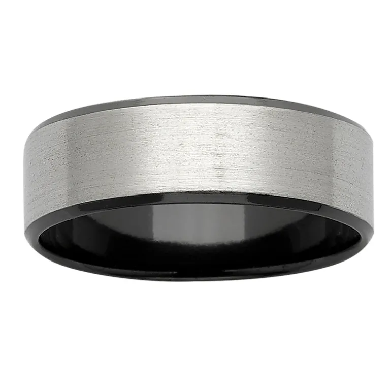 Black & Natural Coloured Zirconium Ring with Sanded Top