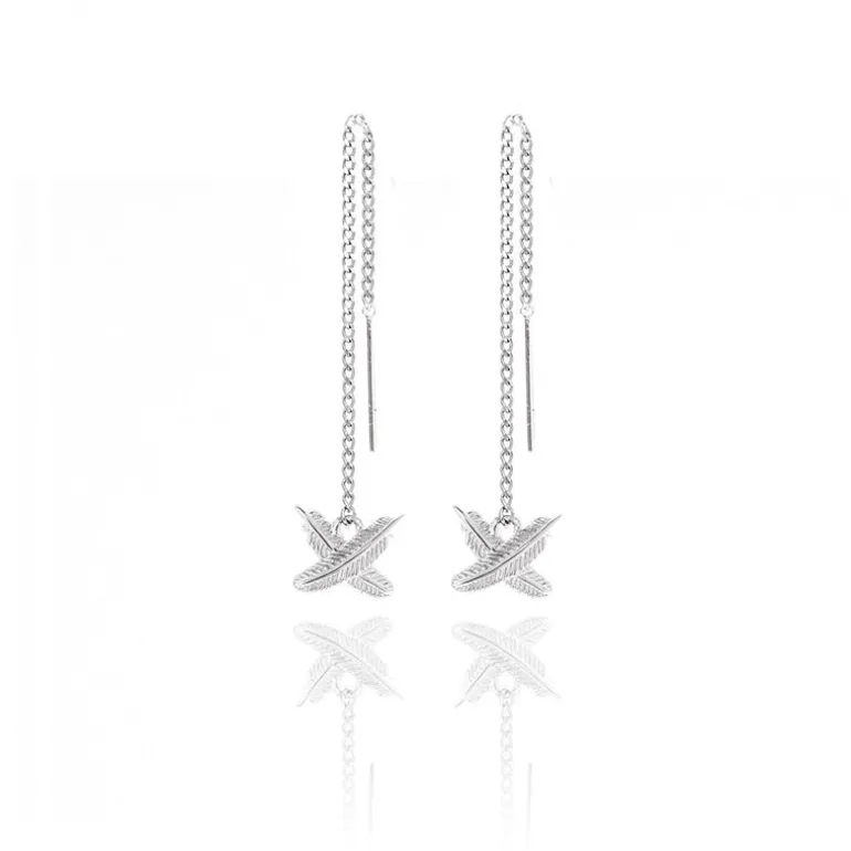 A fun addition to the best selling Feather Kisses range. Adjustable sterling silver thread earrings with a mini feather kiss at the drop, add another Feather Kiss crossed feather design to your collection.