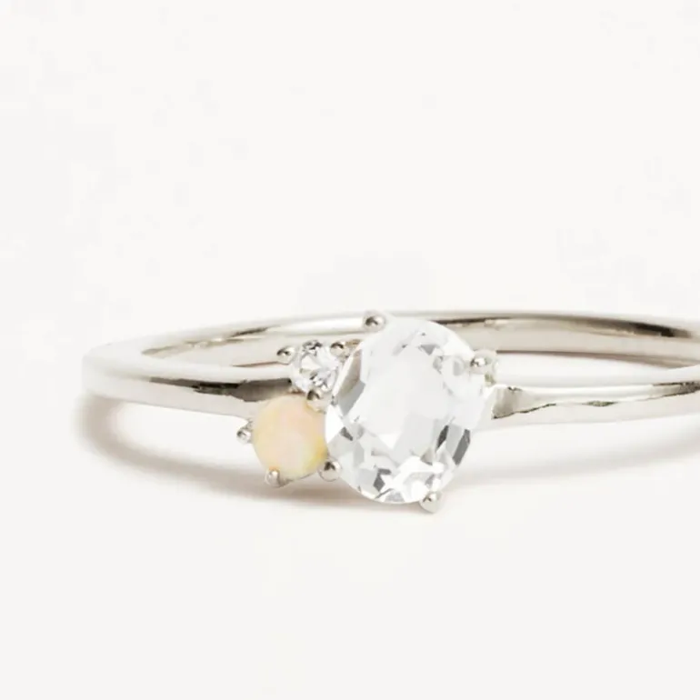 By Charlotte’s Sterling Silver Kindred April Birthstone Ring features a radiant cluster of ethically and sustainably sourced natural white topaz and opal.