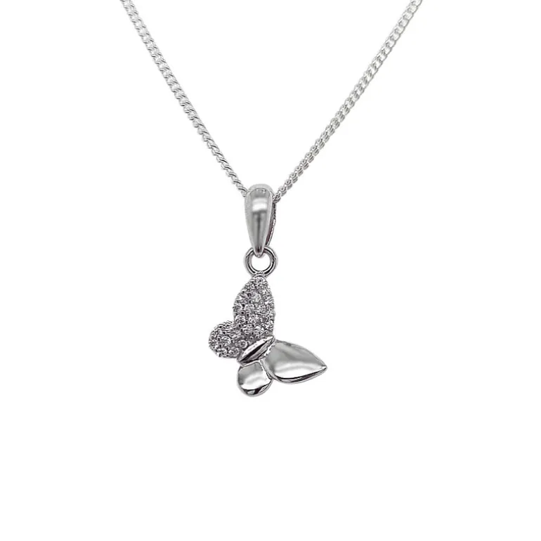 Introducing our stunning sterling silver butterfly necklace, specially designed for little fashionistas. This adorable accessory features a delicate butterfly pendant with a touch of sparkle, thanks to the exquisite cubic zirconias set into one wing. The necklace hangs from a 40cm chain, ensuring it fits comfortably around your child’s neck. Crafted with care from high-quality sterling silver, this necklace is the perfect gift for birthdays, special occasions, or just to show your little one how much they mean to you. Order now and let your child shine with our beautiful butterfly necklace.