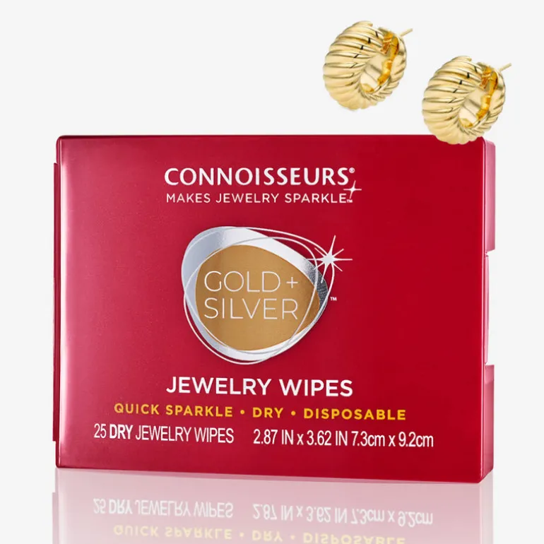Connoisseurs Jewellery Wipes Compact is the quick “no-water-necessary” way to clean all your gold and silver jewellery. Conveniently packaged in an easy-to-open compact, our dry, disposable wipes work anywhere, any time. What’s the secret? A special anti-tarnish shield helps your jewellery retain its mirror-like luster. Trust your gold and silver jewellery only to the best – Connoisseurs!