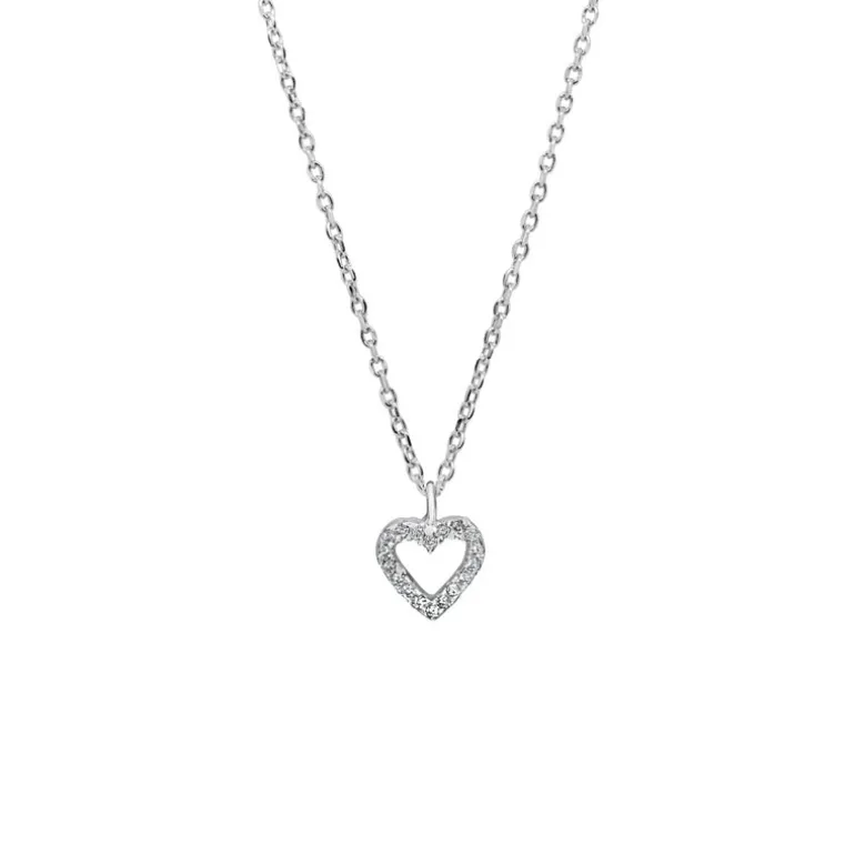 Grace ‘Love’ Micro Heart Necklace | Silver CZ RH