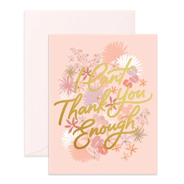 A beautiful full colour card printed with ‘I Can’t Thank You Enough’ in metallic gold foil.