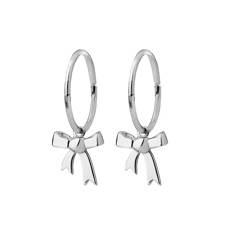 A duo of miniature bows, tied just-so, hang from a pair of sleeper hoops.