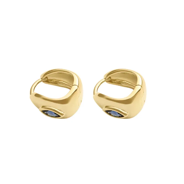 Bold yet refined, the Ink Hoops feature a chubby dome silhouette with a marquise-cut blue sapphire nano stone as the focal point. Available in 18k gold plated or silver, they’re perfect for making a statement.