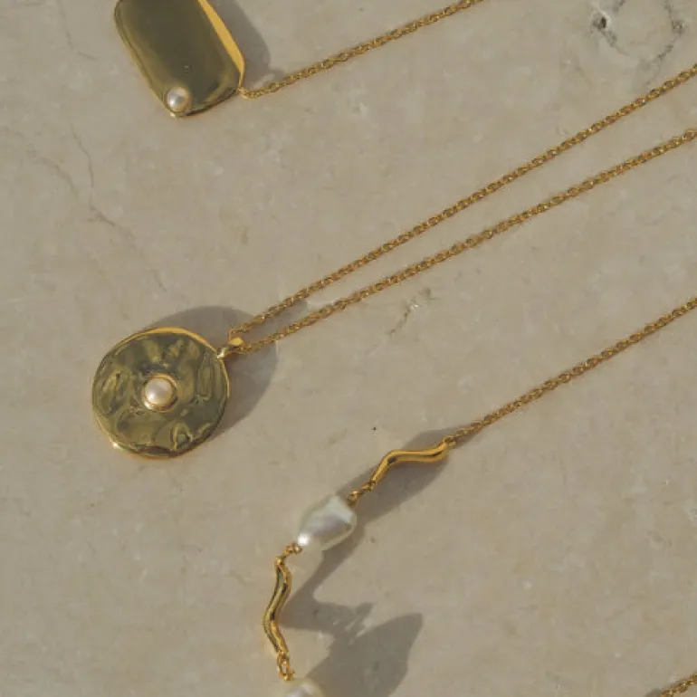 The Vista Necklace has a talismanic feeling that plays on the soft, satin-like ripples of a still ocean pool at first light. Delicate and refined, the heart of the pendant features a dainty freshwater pearl. This pendant is engravable.