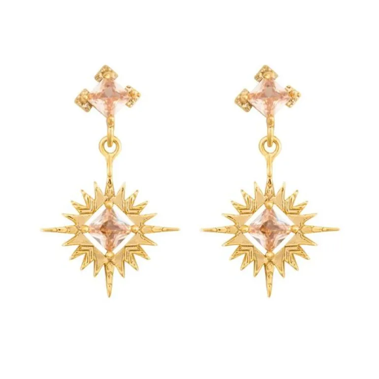 Bask in the glow of the golden hour with Lindi Kingi’s Starburst Earrings, an ethereal addition to your ensemble that will illuminate your presence. These radiant charms feature a central champagne zirconia, cradled within a burst of gold that captures the spirit of a celestial spectacle. At 2 cm in length, these earrings dangle with just the right amount of drama, perfect for those occasions where you want to shine. Whether you’re stepping out for a morning brunch or an evening soiree, let these golden treasures be your talisman of light.