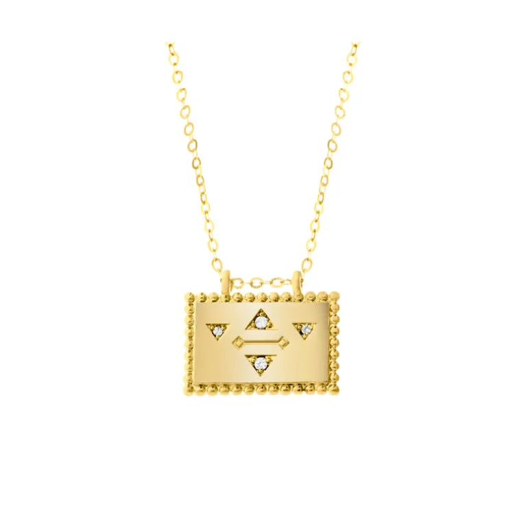 The Necklace features an engraved design on the front with four tiny white zirconia and the message ” I am anything I want ” engraved on the reverse.