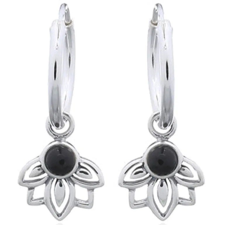 Discover the enchanting allure of our Luna ‘Leda’ Onyx Sterling Hoop Earrings. Each earring showcases a captivating onyx stone, embraced by sterling silver in a design that evokes the delicate beauty of a blossoming flower. The polished onyx, known for its protective qualities, is elegantly set to create an eye-catching contrast against the shimmering silver. Measuring 8mm in width, 20mm in height, and 12mm in depth, these hoops are the perfect size to make a statement while maintaining an air of classic refinement. Whether styled for a daytime affair or an elegant evening event, these earrings promise to add a touch of sophistication and mystery to your ensemble.