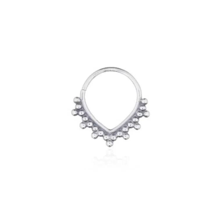 The ‘Telesto’ Sterling Silver Piercing from our Luna collection offers a chic and minimalist design perfect for those who love a touch of elegance in their jewellery. Crafted in sterling silver, this single V-shaped piercing is adorned with a delicate arrangement of tiny silver beads, adding a subtle yet stylish detail to your look. Whether you’re curating a unique ear stack or wearing it solo, the ‘Telesto’ piercing is a versatile piece that complements any style.