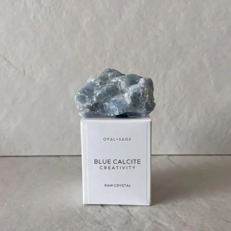 Opal & Sage – Blue Calcite (Creativity) Raw Boxed Crystal