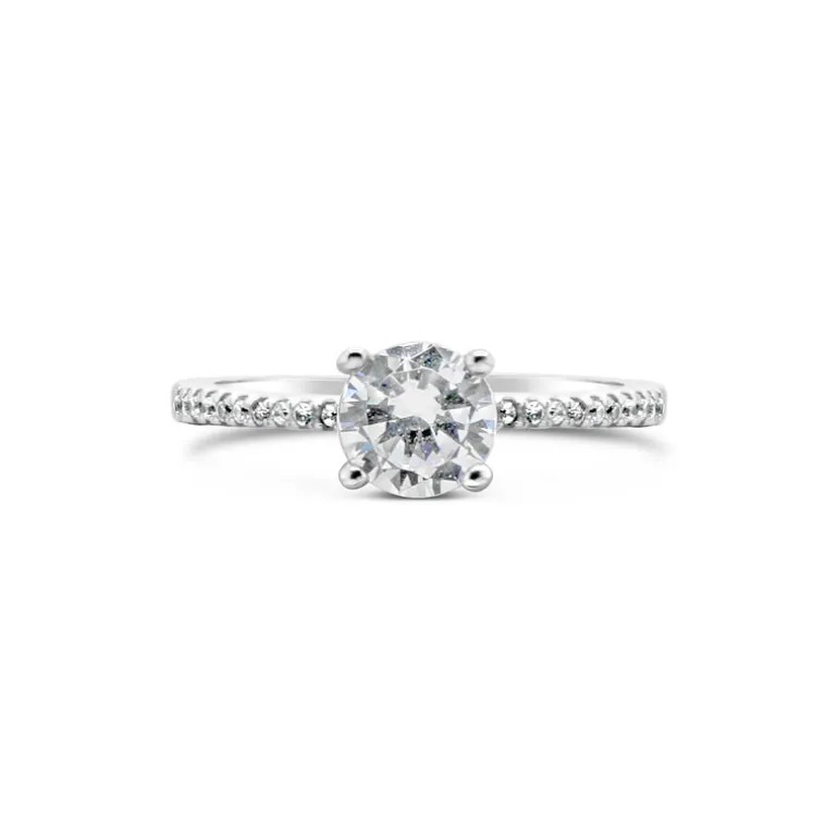 Promise ‘Elegant’ 4 Claw Solitaire w Bead Set Band Ring