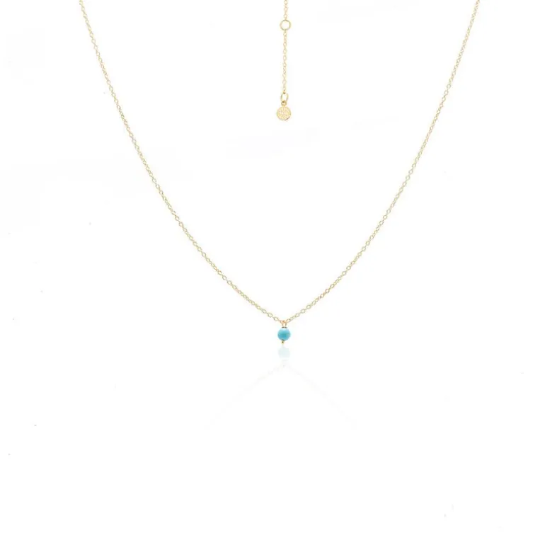 14k gold-plated sterling silver necklace with mini turquoise pendant. Handcrafted by artisans in sterling silver. Designed in New Zealand