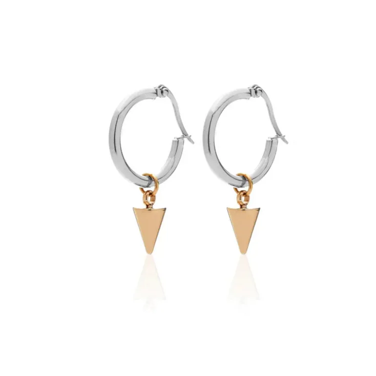 Elevate your style with our new must-have Kate Sleeper Hoops featuring a chic two-tone design: silver hoops with a signature gold spike.