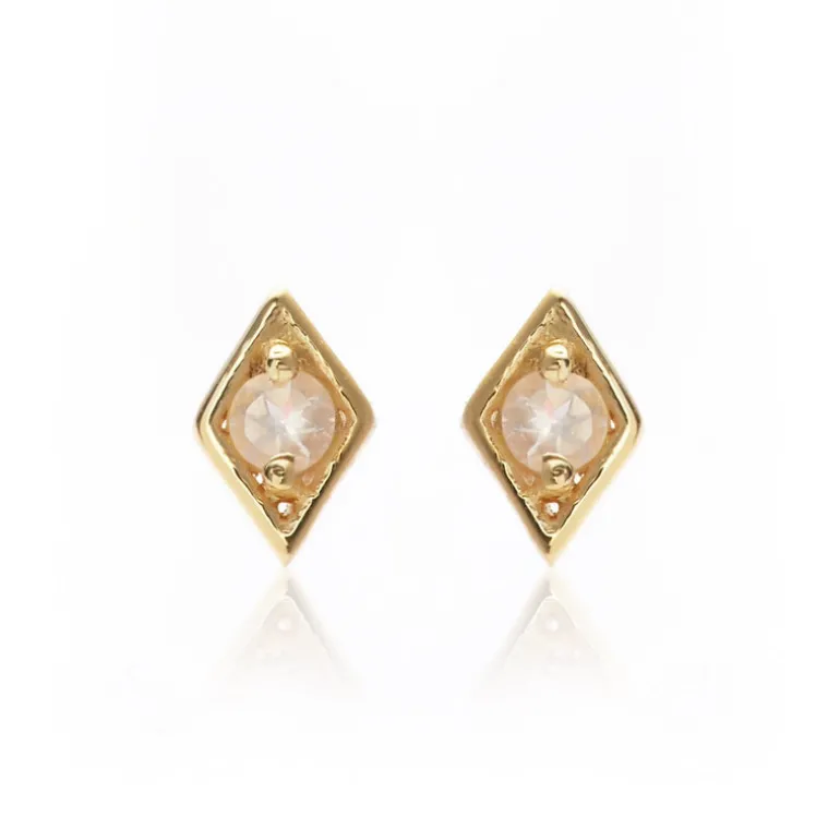 14k gold plated sterling silver and rose quartz diamond shape stud earrings.