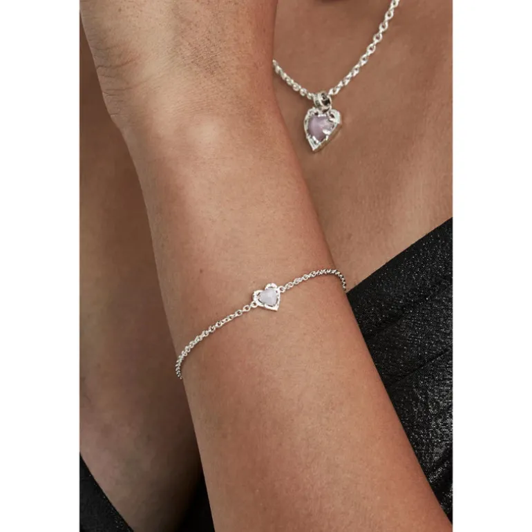 Indulge in the adventurous spirit of love with our striking bracelet. The ‘Gothic Romance Bracelet’ features a delicate heart-shaped pink Apatite stone cradled by sharp claws and a frame of bones suspended on a 19cm cable chain. Made from solid sterling silver.