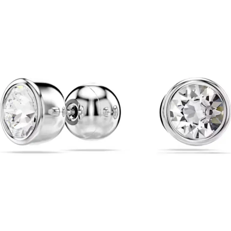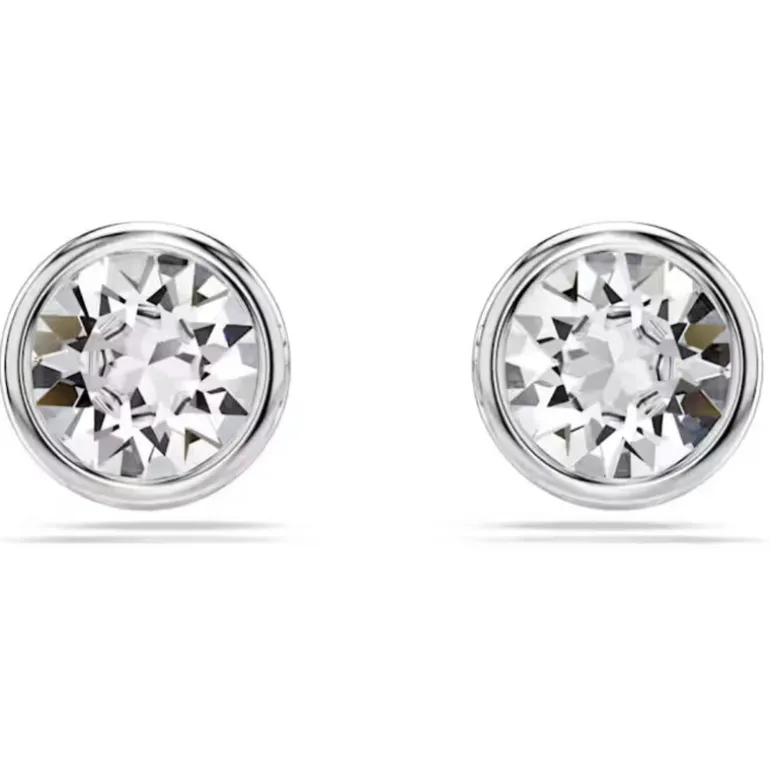 These refined pierced studs are a sublime example of Swarovski’s expert faceting. Each rhodium plated piece features a round-cut crystal in a puffy bezel setting. Pair with a bracelet or necklace from the Imber family to layer on light.