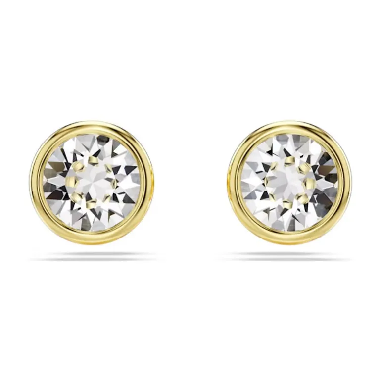 These simple pierced studs are a beautiful display of Swarovski’s expert faceting. Each gold-tone plated piece features a round-cut crystal in a puffy bezel setting. A super everyday choice that can easily be paired with a bracelet or necklace from the Imber family.