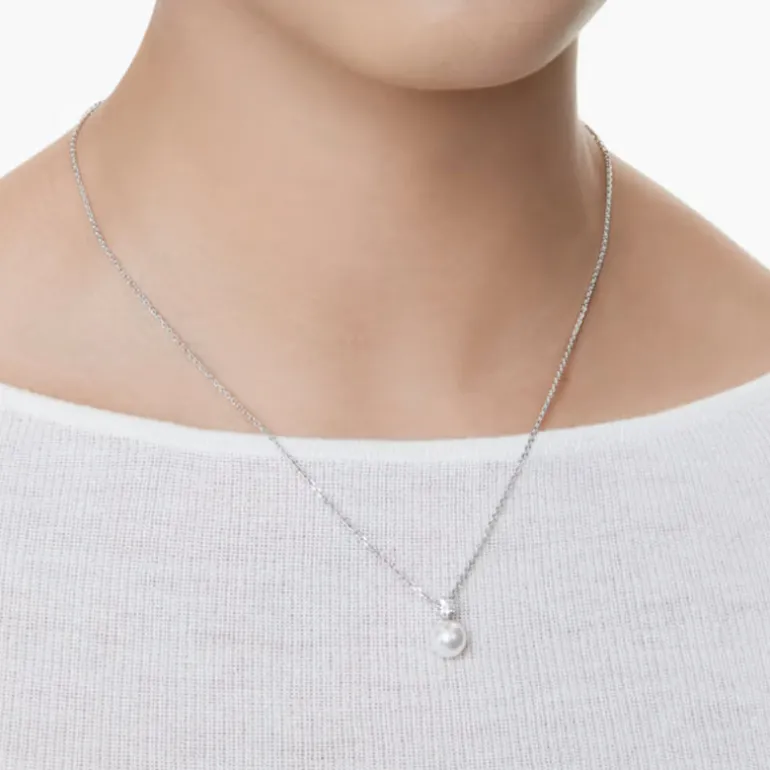 This delicate Matrix pendant showcases the beauty in simplicity. Suspended from an elegant chain, the rhodium plated jewellery features a single white Swarovski Crystal Pearl and a round-cut Swarovski Zirconia. It’s the perfect piece of light-filled luxury and can be easily paired with other pieces from the Matrix family.
