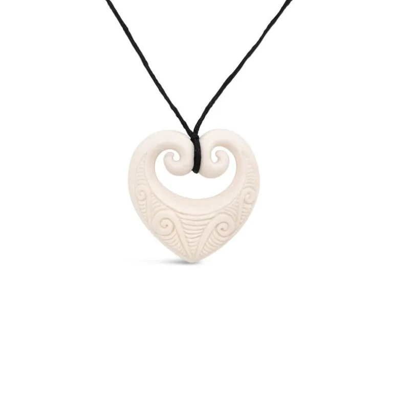 Wild at Heart NZ Carved Bone Koru Heart Necklace