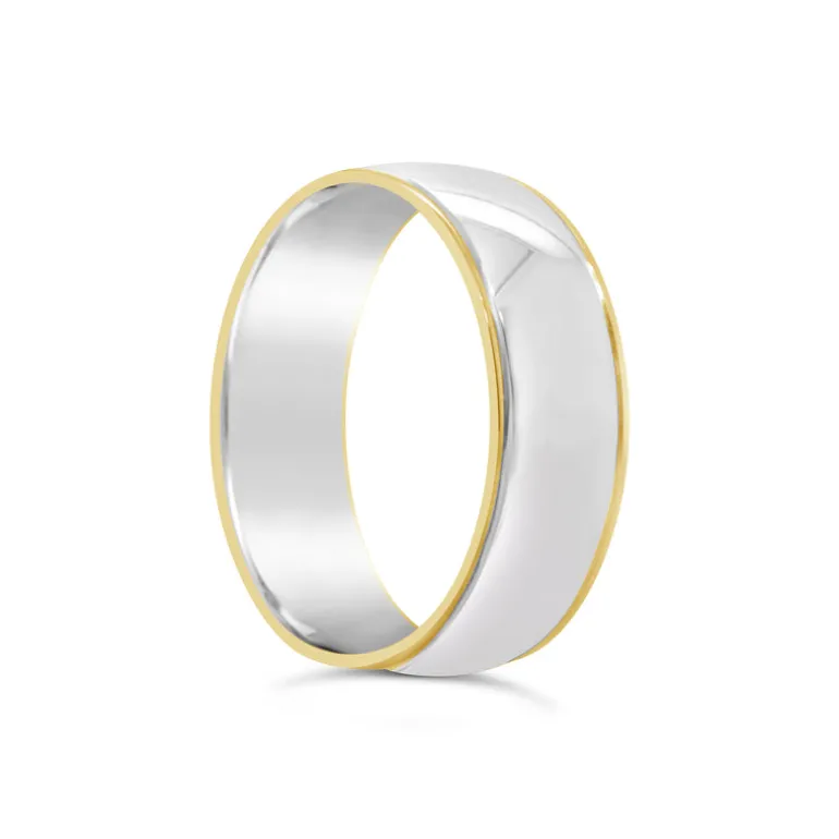 9ct White & Yellow Gold Faceted Wedding Ring. Finger Size T