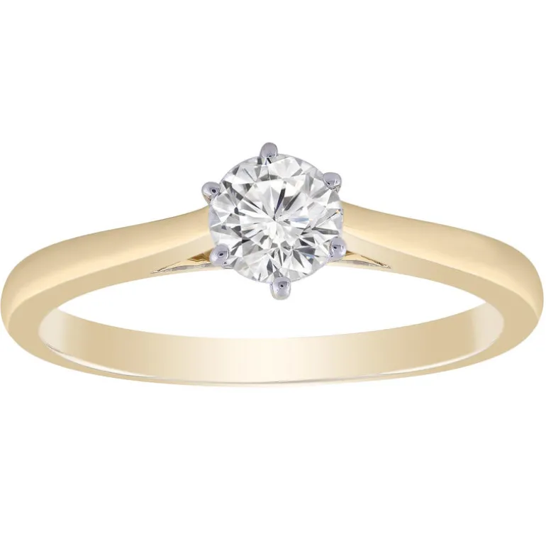 9ct Yellow Gold 0.5ct Solitaire 6 Claw Diamond Ring