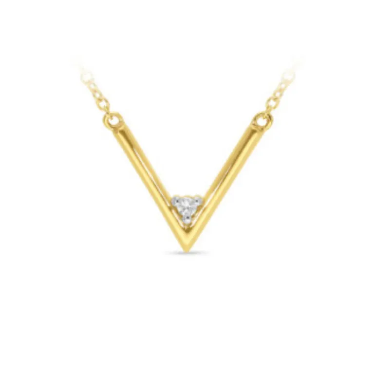 Enhance your elegance with our 9k Yellow Gold V-Shaped Pendant, adorned with a dazzling diamond. This 42cm necklace, extendable to 46cm, features a sleek V design that perfectly cradles a brilliant diamond, adding a touch of sophistication and sparkle. Perfect for layering or wearing solo, this versatile piece effortlessly complements any outfit, making it an essential addition to your jewelry collection. Embrace timeless beauty with this stunning pendant.