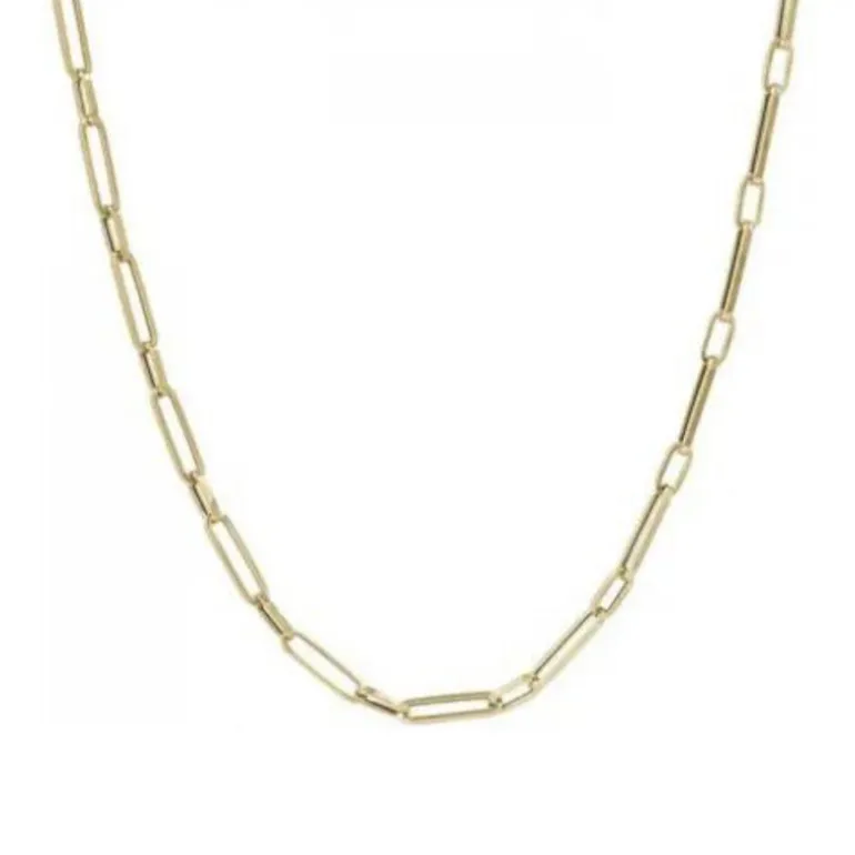 9k Yellow Gold Paper Link 45cm Necklace Chain featuring an elongated link and a shorter link combined for an elegant look.
