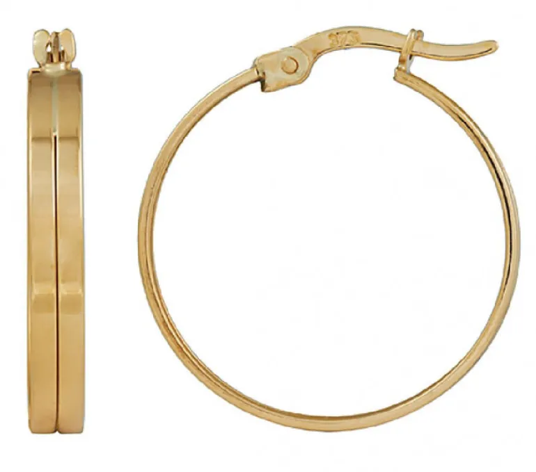 9k Yellow Gold Rectangular Hoop Earrings with single line detailing