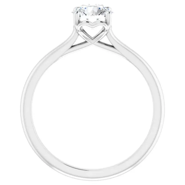 This Amavi solitaire ring is set in 14k gold and features a sweet heart motif on the sides of the ring encasing a 6mm (approx 0.75ct) round brilliant moissanite.