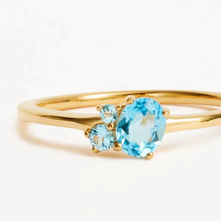 By Charlotte’s Gold Kindred March Birthstone Ring features a kaleidoscopic cluster of ethically and sustainably sourced natural blue topaz.