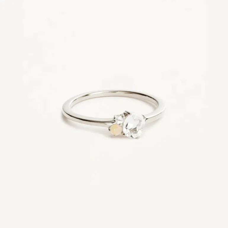 By Charlotte’s Sterling Silver Kindred April Birthstone Ring features a radiant cluster of ethically and sustainably sourced natural white topaz and opal.