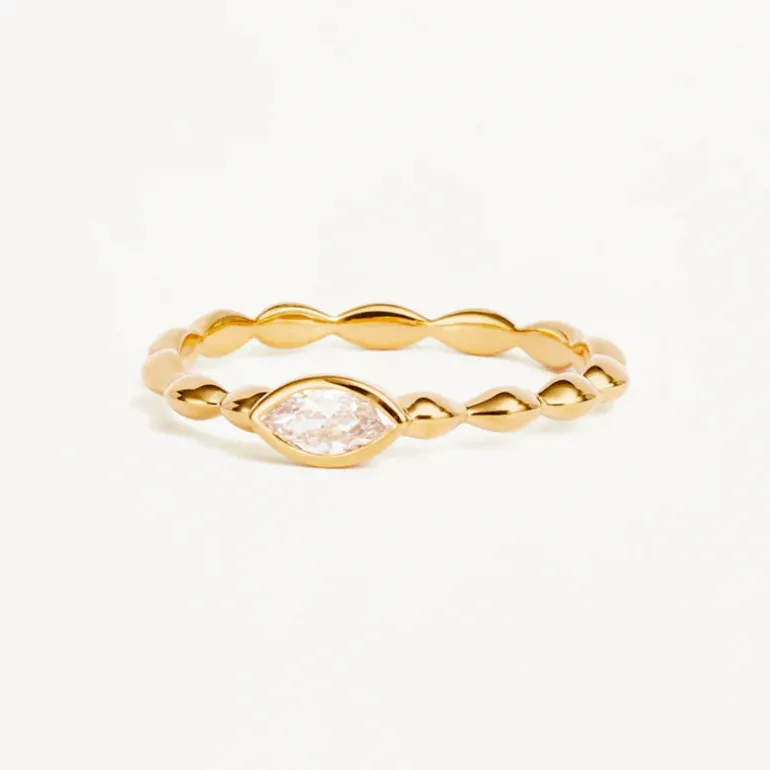 Protect yourself from negative energy in By Charlotte’s 18k Gold Vermeil Lucky Eye Ring, featuring a marquise-cut bezel-set cubic zirconia on an intricate silver band.