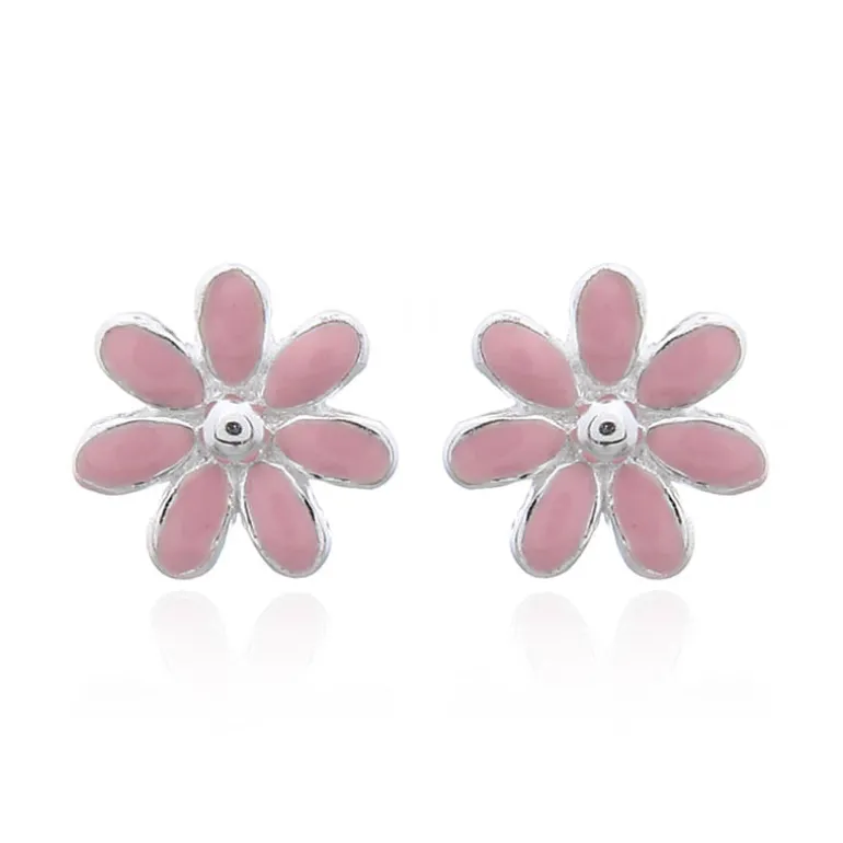 Charlie & Rose Pink Flower Stud Earrings | Silver | Enamel