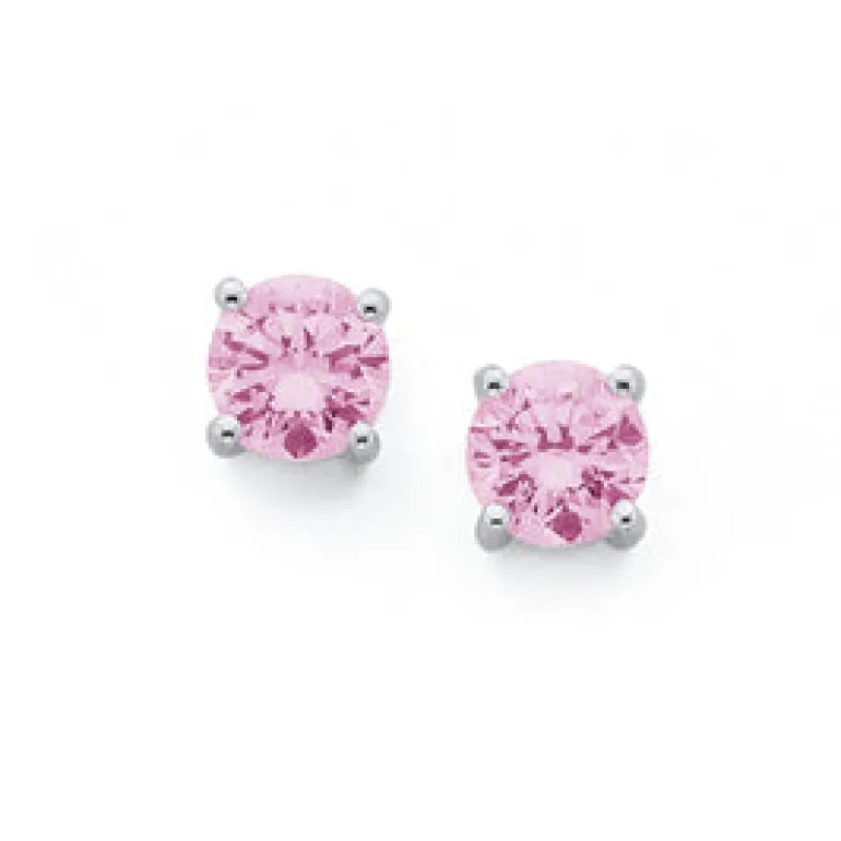 Charlie & Rose Silver Stud Earrings | Silver RH | Pink CZ