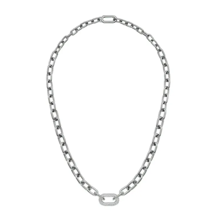 A mix of industrial elements and refined crystal details take this silver link necklace way beyond your basic chain. Wear it with the rest of the Crystal Link collection or alone as a statement piece—this chunky chain is a stunner either way.