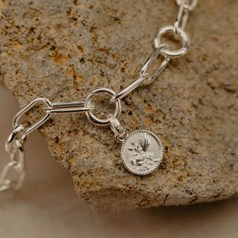 Fantail Coin pendant charm features one of Aotearoa’s most beloved birds, the Fantail. Recognised by its unique fan-shaped tail and inquisitive nature, the friendly Fantail is considered a true treasure of New Zealand. Intricately handcrafted from solid sterling silver, this coin charm adds a meaningful and stylish touch to your Evolve charm bracelet, allowing you to carry a piece of New Zealand’s unique heritage with you wherever you go.