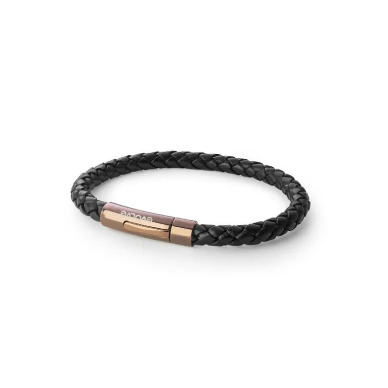Evolve Latitude Blk Leather Bracelet with Stg Copper Clasp