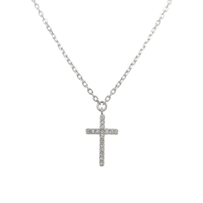 Grace ‘Faith’ Cross Necklace | Silver CZ RH