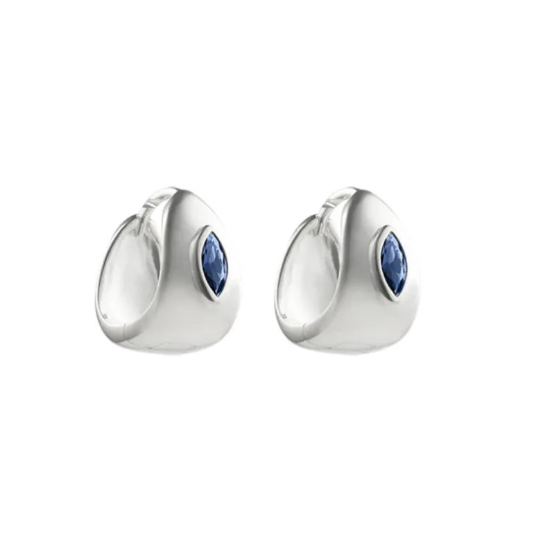 Bold yet refined, the Ink Hoops feature a chubby dome silhouette with a marquise-cut blue sapphire nano stone as the focal point. Available in 18k gold plated or silver, they’re perfect for making a statement.