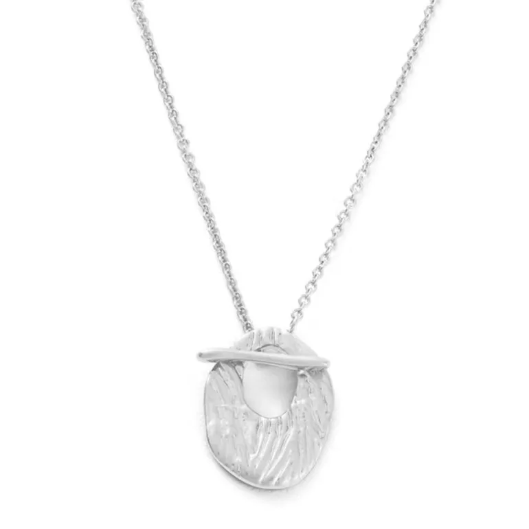 A play on the classic t-bar pendant, featuring a hand-drawn textured pendant, and an loop-through t-bar. Toggle to wear the necklace in a Y style when dressing up, or with the pendant and the bar at the same level for a more relaxed everyday look.