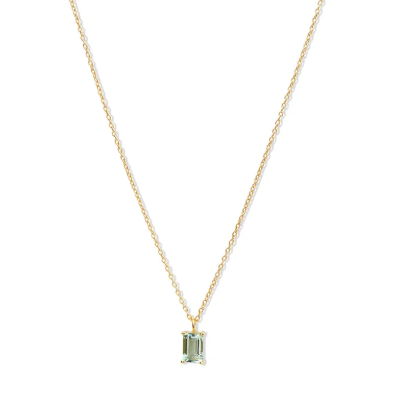 In a beautiful short style necklace, yellow gold has been perfectly paired with the green amethyst. The gorgeous, bright tones from the rectangle cut of the green amethyst shine as the stone hangs from the yellow gold chain. We love how simple yet stunning this necklace is, perfect for yourself or someone special.