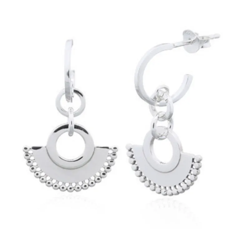 Introducing our Luna ‘Io’ Drop Hoop Earrings – a stunning tribute to the celestial beauty of Jupiter’s moon, Io. These sterling silver earrings feature a bold half-moon design with intricate ball detailing, adding a modern and playful touch to any look. Lightweight and versatile, they are perfect for everyday wear or making a statement on special occasions. Embrace the cosmic allure with these unique earrings from our Luna collection.